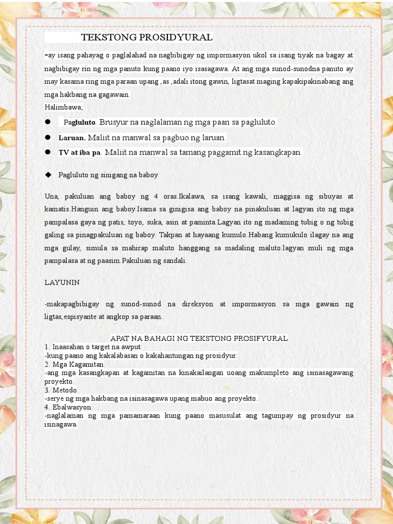 Panuto Punan Ang Hinihingi Ng Bawat Kahon Gamitin Gabay Ang Mga Halimbawa Binanggit Sa Tekstong Brainly Ph Tekstong Prosidyural Pdf B Pan...