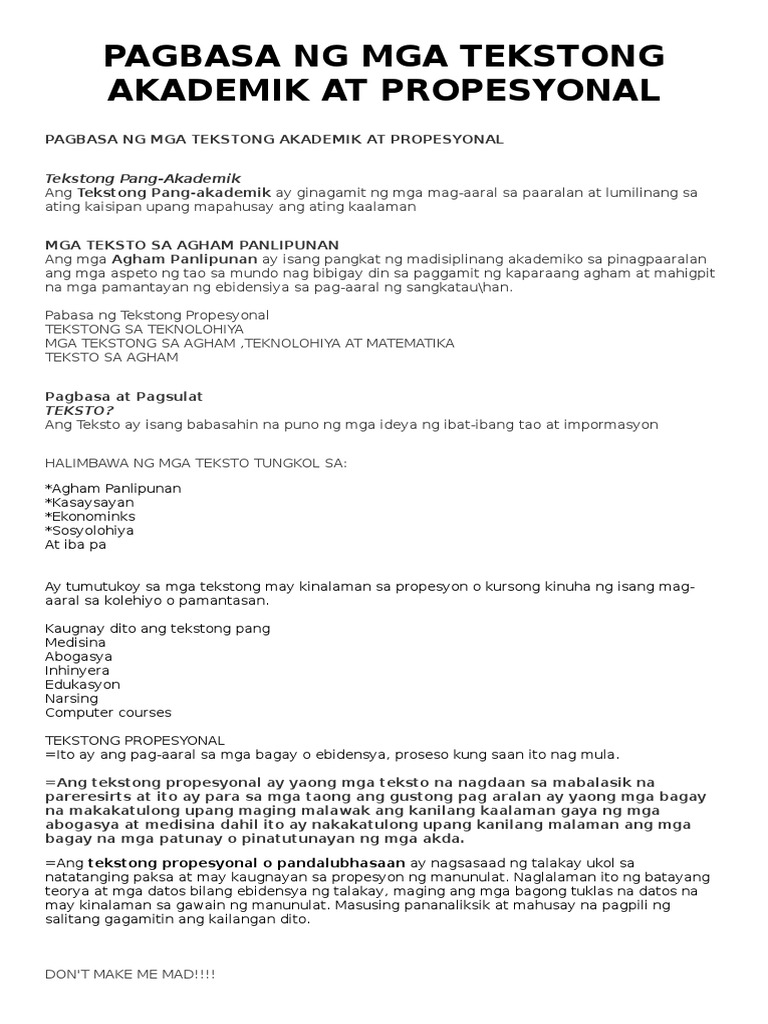 From professional translators enterprises web pages and freely available translation repositories. Informative text tekstong akademik. Ang aklat ng tekstong propesyonal ay maaaring NASA paraang pananaliksik o isang tesis.