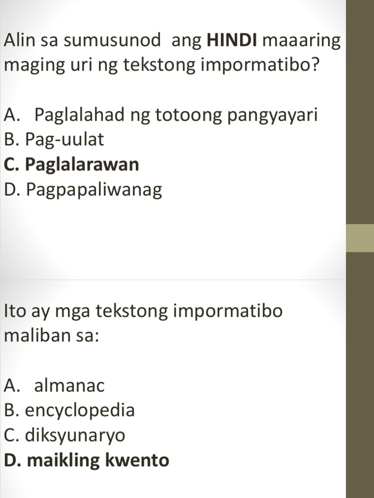 Ang Mga Sumusunod Ay Halimbawa Ng Tekstong Impormatibo Maliban Sa